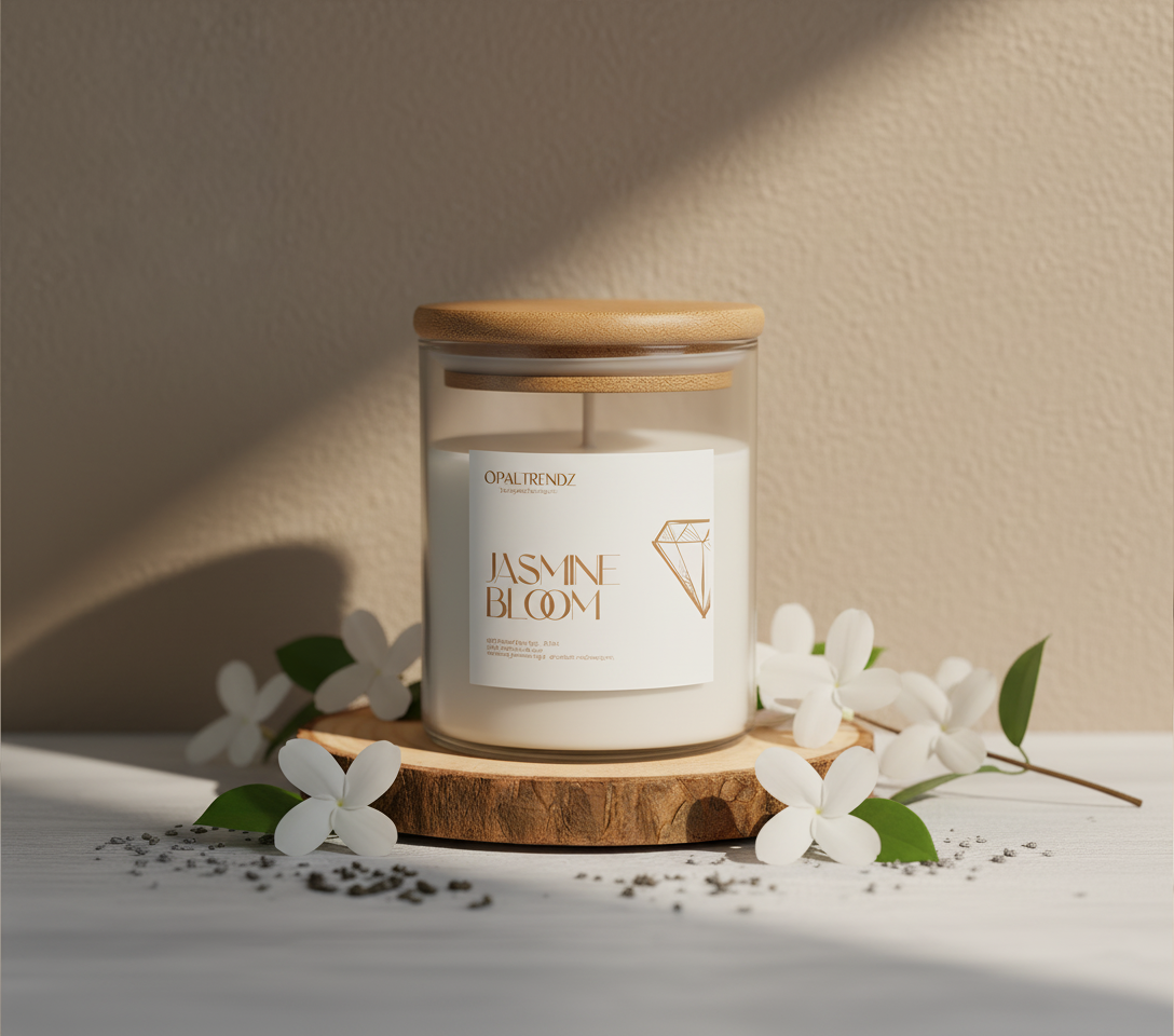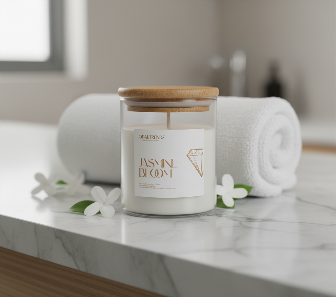 Bring home the soothing charm of fresh jasmine with OpalTrendz’s Jasmine Bloom. Hand-poured with 100% natural soy wax, this premium scented candle is designed to elevate your space with a calming, elegant ambiance while being safe for both you and the environment.